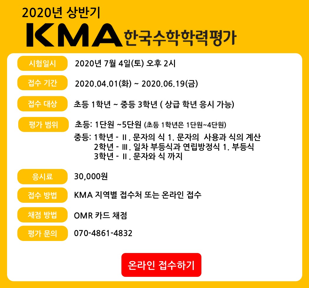 | 2020 상반기 KMA 한국수학학력평가 시행 확정 안내 |