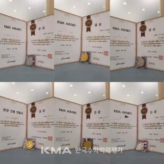 | 2021 하반기 KMA 한국수학학력평가 우수학원 시상 |